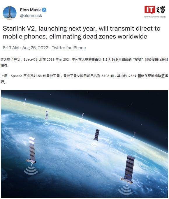 馬斯克通過Twitter表示 第二代星鏈可與手機進行直接傳輸 10:12:00