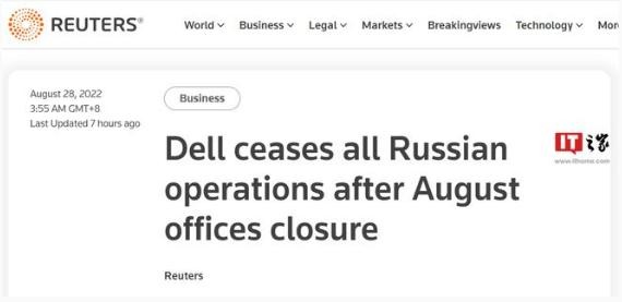 而今日,戴爾發言人 Mike Siemienas 告訴路透社:“8 月中旬,我們關閉了辦公室并停止了所有俄羅斯業務。”
