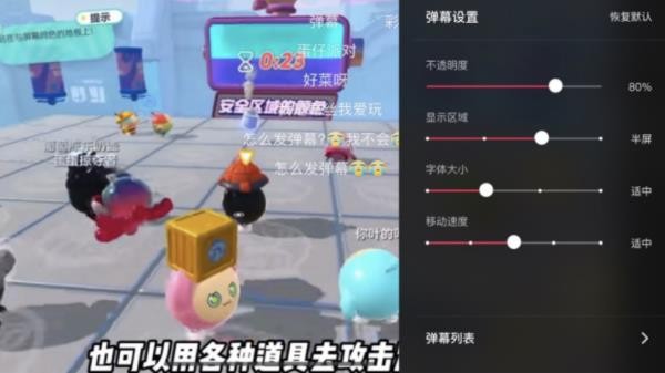 除了文字,彈幕還支持 Emoji 表情符號。同時,用戶可以對彈幕進行設置,調節彈幕的不透明度、顯示區域、字體大小、移動速度。在彈幕設置最下方,用戶可查看彈幕列表。