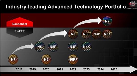 對于 2nm 芯片(N2),臺積電重申其將于 2025 年實現量產。2nm 芯片是臺積電的一個重大節點,該工藝將會采用納米片晶體管(Nanosheet),取代鰭式場效應晶體管(FinFET),這意味著臺積電工藝正式進入 GAA 晶體管時代。其中,2nm 芯片相較于 3nm 芯片,在相同功耗下,速度快 10~15%。在相同速度下,功耗降低 25~30%。
