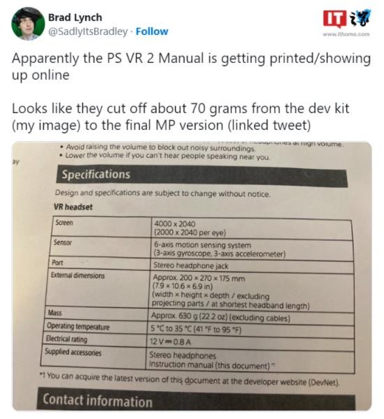 索尼 PlayStation VR2 將于 2023 年初發售,在推出之前,已經有網友曝光了該產品的手冊,其中包括設備的參數信息。