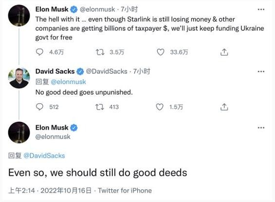 路透社稱,盡管尚不清楚馬斯克是否真的改變了想法,但他似乎做出了將繼續(xù)出資的表態(tài)。報道還提到,關于馬斯克 16 日的推文,有一名推特用戶留言稱“好心沒好報”時,馬斯克回答說:“即便如此,我們還是得做好事。”