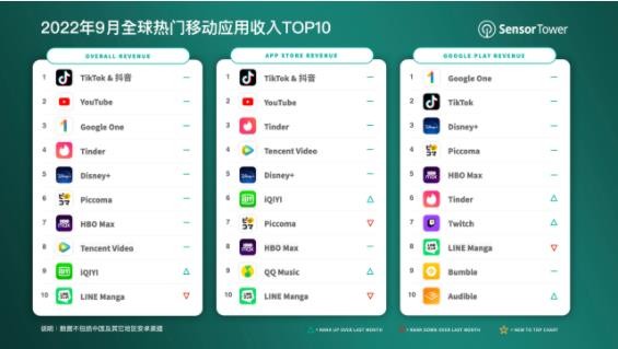 根據 Sensor Tower 發布的商店情報數據,2022 年 9 月抖音及海外版 TikTok 在全球 App Store 和 Google Play 吸金超過 3.15 億美元,是去年同期的 1.7 倍,蟬聯全球移動應用 (非游戲) 收入榜冠軍。其中,大約 49.2% 的收入來自中國版本抖音;美國市場排名第二,貢獻了 16.6% 的收入;日本市場排名第三,占 3.4%。