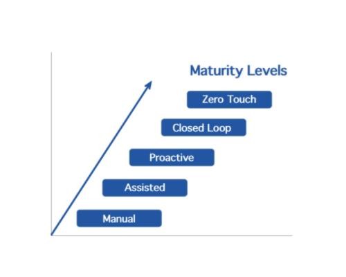 該工具還為運(yùn)營(yíng)商繪制了五個(gè)層次自動(dòng)化的路徑,從最早的輔助自動(dòng)化,到最先進(jìn)的零接觸,在這一階段,自動(dòng)化的、意圖驅(qū)動(dòng)的 AI 能力可以預(yù)測(cè)網(wǎng)絡(luò)故障和問(wèn)題,并通過(guò)閉環(huán)學(xué)習(xí)提供網(wǎng)絡(luò)優(yōu)化決策。