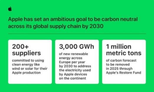 蘋果與今日通過新聞稿宣布將加緊與供應鏈合作推動其 2030 年的碳中和目標,并將與清華大學開展新的合作來促進該目標的實現。