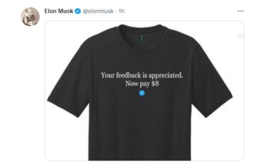 在掌管了推特之后,馬斯克已對 Twitter Blue(“藍 V 認證”)征收每月 8 美元的訂閱費。