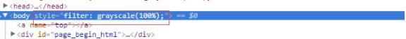 實現(xiàn)這種效果很簡單,只需要將css代碼:filter: grayscale(100%);放到body元素里面的style=“”中間就OK了,根本就不需要用到什么網(wǎng)站變灰的插件。如下圖所示: