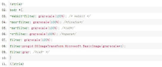 現(xiàn)在做網(wǎng)站一般在全國哀悼日、清明節(jié)、地震日時,懂事的網(wǎng)站長都會讓網(wǎng)站整體變成灰色,但是有很多新手網(wǎng)站長不知道怎么讓網(wǎng)站頁面變成灰色的,下面IT備忘錄小編就給大家分享自己搜集的比較全面的網(wǎng)站頁面變灰色CSS代碼,兼容所有的瀏覽器!