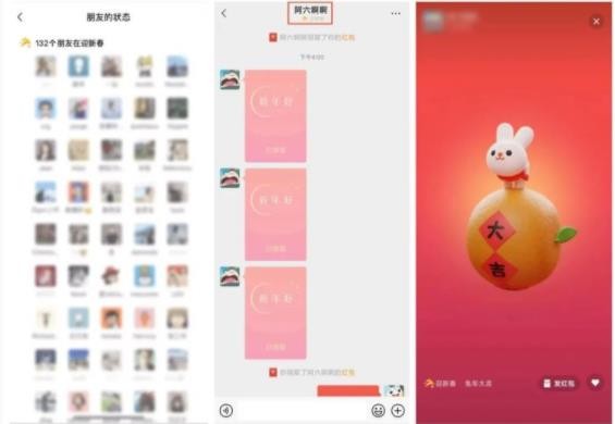當好友領取了拜年紅包,還可以將紅包的祝福語設置為微信狀態。設置為微信狀態后,在對話頁面會顯示一只“兔飛猛進”的金兔,還有“迎新春”的文字狀態。