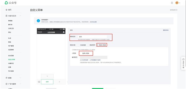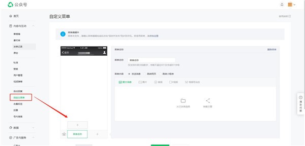 2.進入到公眾號后臺在左側菜單找到自定義菜單,點擊進入就可以看到右側設置自定義菜單的位置。