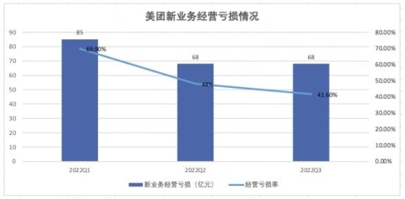 財(cái)報(bào)顯示,2022 年前三季度,美團(tuán)新業(yè)務(wù)分部經(jīng)營(yíng)虧損累計(jì)達(dá)到 221 億元,拖累公司整體經(jīng)營(yíng)虧損累計(jì)超 50 億元。要改善經(jīng)營(yíng)狀況,對(duì)經(jīng)營(yíng)效率不佳的業(yè)務(wù)作出調(diào)整勢(shì)在必行。美團(tuán)經(jīng)營(yíng)虧損率從 2022 年第一季度的 69.9% 收窄至第三季度的 41.6%,主要就是由于商品零售業(yè)務(wù)的運(yùn)營(yíng)效率不斷提高,以及其他新業(yè)務(wù)有效的成本及開支控制。