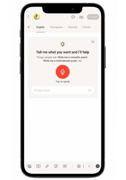 Bidawatka 稱 Koo 是第一個將聊天機器人整合到貼文撰寫的平臺。用戶可以將揭示信息輸入 ChatGPT 工具,也可以用 Koo 語音命令輸入。他還補充說,大約有 20% 的 Koo 用戶喜歡在應用內撰寫內容,ChatGPT 能將比例提高。