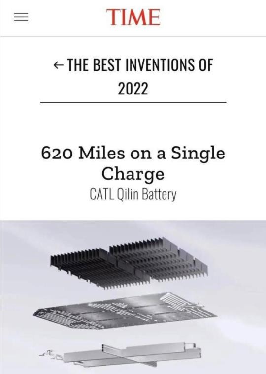 去年 11 月底,麒麟電池被美國《時代》周刊(TIME)評為 2022 年度最佳發明。