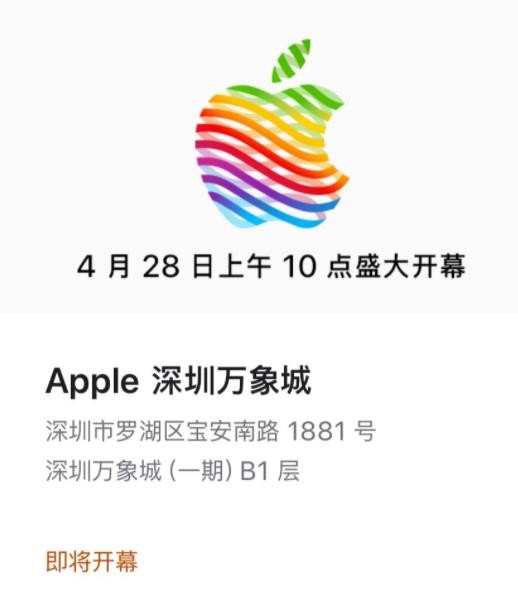 根據此前消息,蘋果將在深圳籌建第二家 Apple Store。今日,IT之家網友發現,蘋果官網顯示深圳萬象城 Apple Store 將于 4 月 28 日 10:00 正式開幕。