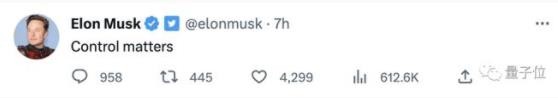 馬斯克也來評論底下湊了熱鬧,“控制很重要”: