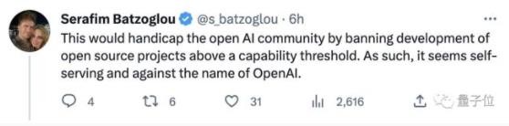有網友認為 OpenAI 提出這樣的舉措,阻礙了開放人工智能社區的發展,這看起來是自私的,與 OpenAI 的名稱相違背: