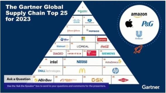 近日,全球供應鏈榜單 Gartner Top 25 公布新一年排名,聯想集團再次入圍并錄得歷史最佳排名,位居第8,超過沃爾瑪、特斯拉、西門子等跨國企業。這也是聯想集團再次蟬聯亞太第一,另一家入圍的中國企業阿里巴巴今年位列 23。