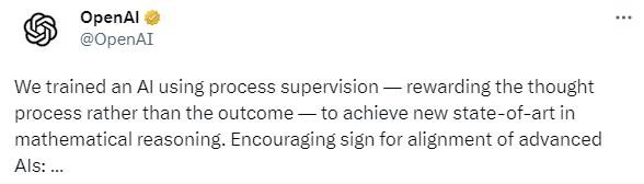 該公司提出的新策略是:訓練人工智能模型時,獎勵每個正確的推理步驟,而不僅僅是簡單地獎勵正確的最終結論。根據研究人員的說法,這種方法被稱為“過程監督”,而不是“結果監督”,它可能會提高人工智能的性能與準確性,因為這種策略鼓勵模型更多地遵循類似人類的“思維鏈”。