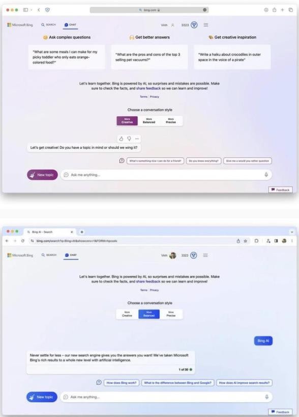 微軟可能會(huì)繼續(xù)保持使用 Chrome 和 Safari 瀏覽器訪問(wèn)必應(yīng)聊天的用戶數(shù)量較低,以便測(cè)試它們的表現(xiàn),然后再?zèng)Q定是否向更廣泛的用戶開(kāi)放這一功能。IT 之家還注意到,本周早些時(shí)候微軟確認(rèn)將每日聊天輪數(shù)的上限從 200 提高到 300,每次會(huì)話的輪數(shù)上限從 20 提高到 30。微軟還將必應(yīng)圖片創(chuàng)造器在必應(yīng)聊天中的使用范圍從創(chuàng)意模式擴(kuò)展到精確模式和平衡模式。除此之外,本周末,必應(yīng)還慶祝了它的 14 歲生日,其于 2009 年 6 月 3 日正式上線。