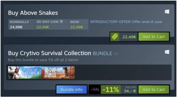 目前已有少部分歐盟地區的 Steam 頁面顯示 30 天內的游戲最低價,以及當前和折扣價標簽,方便買家在使用 Steam 購買游戲時做出更明智的決定。