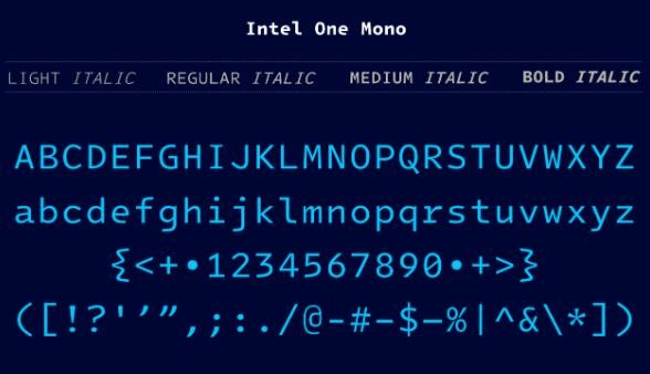 英特爾開源了一款面向開發者的新等寬字體 “ Intel One Mono ”,這是一種富有表現力的等寬字體系列,集清晰度、易讀性和開發者視力保護于一體。