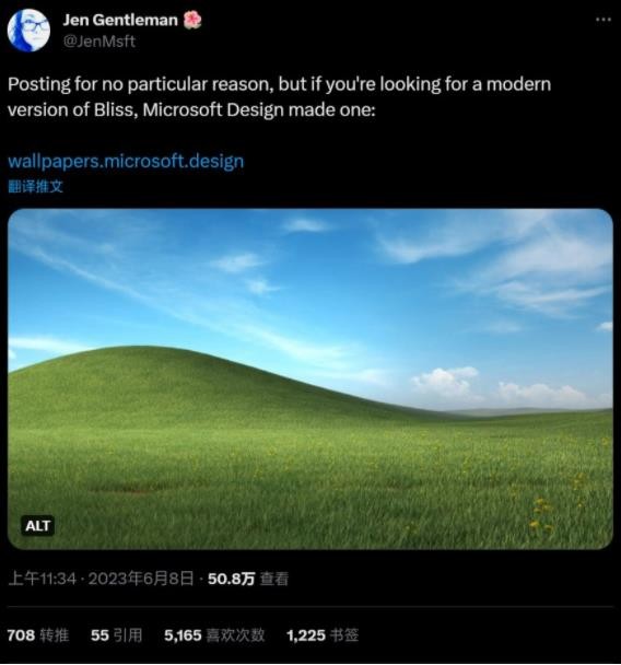 微軟設(shè)計(jì)團(tuán)隊(duì) Jen Gentleman 發(fā)布推文展示了新版 Bliss 壁紙,即著名的 Windows XP 經(jīng)典“藍(lán)天白云綠草” 壁紙的全新演繹版本。