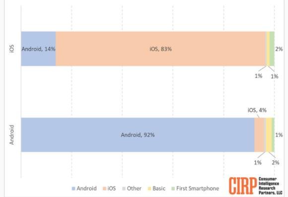 上個月,CIRP 報告指出,美國 Android 用戶轉投 iPhone 的比例創下了五年來新高。