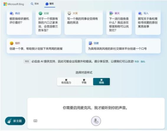 語音輸入功能已向所有用戶開放,用戶可以通過麥克風與 Bing Chat 進行交流。 (碼上科技)