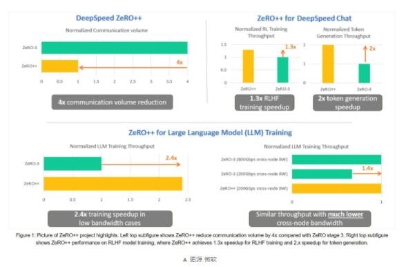 IT之家注意到,例如 Turing-NLG、ChatGPT 和 GPT-4 這樣的大型模型,其訓練需要跨多個 GPU 設備占用大量顯存和計算資源,而 ZeRO++ 引入了通信優化策略,以克服在低帶寬集群上進行訓練時原有 ZeRO 傳輸技術的帶寬限制。目前微軟已經放出了相關技術文檔,研究人員可以利用 ZeRO++ 更有效地訓練模型,在 AI 領域探索新的可能性。
