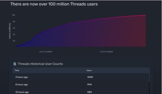 北京時間周一午后 15 點左右,據數據追蹤網站 Quiver Quantitative 披露,Threads 的登錄用戶數已經突破 1 億人。此時距這款軟件 7 月 5 日在美洲地區首發上線連 5 天整都沒到。
