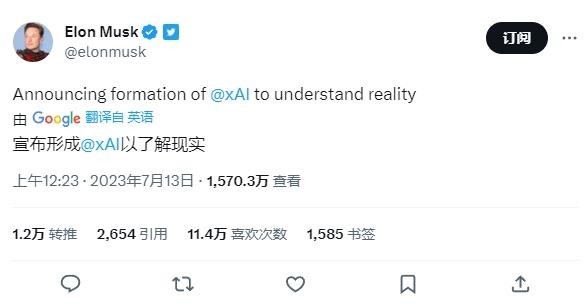 當?shù)貢r間周三,馬斯克宣布 xAI 公司正式成立。馬斯克表示,推出 xAI 的原因是想要“了解宇宙的真實本質”。