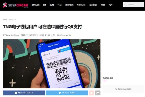 據(jù)馬來西亞媒體 SoyaCincau 報道,馬來西亞 Touch'n Go (中文名為一觸即通)子公司 TNG Digital 的 CEO 倪翔近日表示,Touch'n Go eWallet 已聯(lián)通支付寶中國商家網(wǎng)絡。此舉意味著在中國內(nèi)地的大馬用戶可使用自己的支付軟件完成掃碼支付,“就像中國人用支付寶一樣方便”。目前,Touch'n Go eWallet 為馬來西亞最大的電子錢包服務提供商。