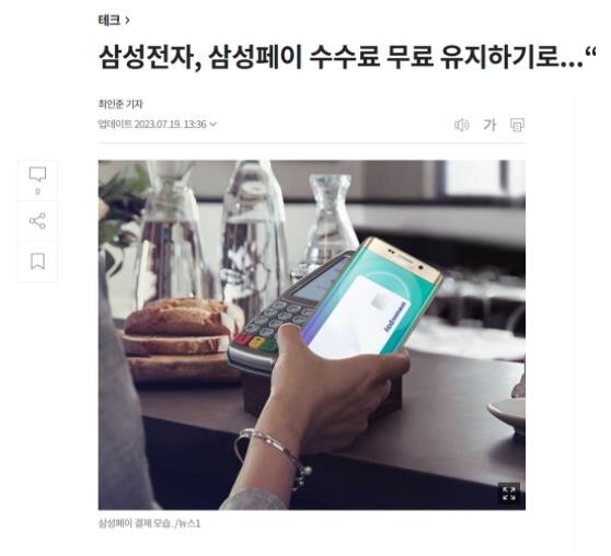 據(jù)韓媒《????》報道,三星電子 19 日宣布,公司已決定“Samsung Pay 繼續(xù)免費”,并計劃與國內(nèi)卡公司續(xù)簽合同。