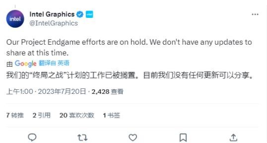 英特爾官方推特賬號 Intel Graphics 在回復網友提問時,明確表示已經擱置 Project Endgame 項目,現階段沒有任何更新可以分享。