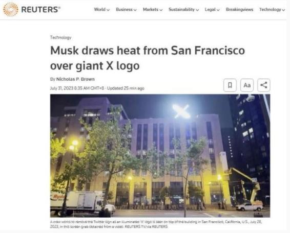 事實卻是并非所有舊金山人都對馬斯克表示歡迎。在馬斯克宣布將推特公司的名字變更成“X”后,該公司于 28 日在位于舊金山市集街(Market Street)的大樓屋頂上,安裝了一個會發光的“X”標志。這讓一些附近居民感到煩擾,抱怨燈光“刺眼”。