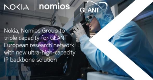 諾基亞、Nomios 集團與 GÉANT 共同宣布,GÉANT 將部署諾基亞 IP / MPLS 解決方案,此次合作由網絡安全服務和解決方案提供商 Nomios 集團牽頭的 10 年框架協議的一部分。