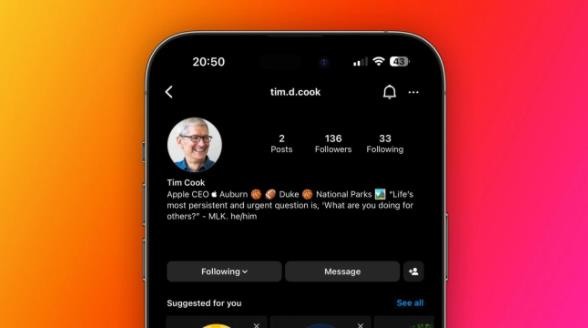 蘋果公司的首席執行官蒂姆?庫克是一個不太喜歡活躍在社交媒體上的人,據 9to5Mac 今天早些時候報道,庫克在 Instagram 上開通了個人賬號,不過該賬號已經被證實是冒充的。