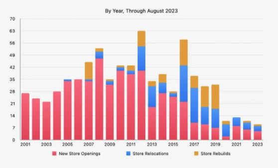 根據 Facades 應用開發者 Michael Steeber 發布的最新博文,截至今年 8 月,蘋果公司今年開設了 8 家新店。而在 2022 年全年蘋果才開設了 6 家新店;2021 年全年開設了 8 家新店。