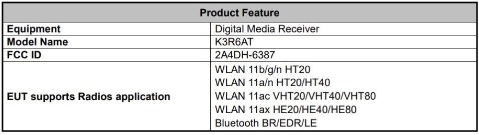 FCC 文件披露的這兩款設備之間的主要區別在于,M3N6RA 支持 WiFi 6,而 K3R6AT 支持 WiFi 6E,其中有一款或許支持 4K。
