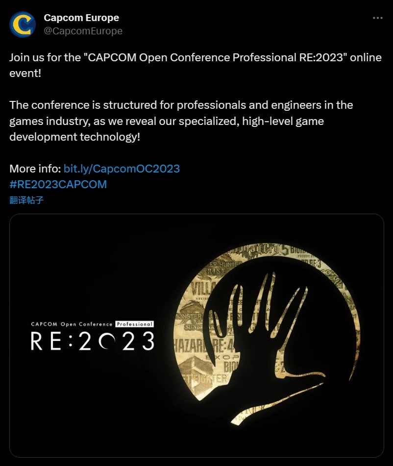卡普空(Capcom)日前在 X 平臺發布貼文,公布了“CAPCOM Open Conference Professional RE:2023”開發者大會,會議據稱將邀請了游戲行業的專業人士和工程師參加,目的是展示卡普空旗下的 RE 引擎。