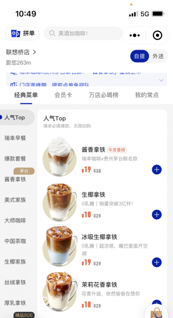 在瑞幸咖啡小程序上,這款“醬香拿鐵”零售價 38 元/杯,使用優惠券后大約 19 元/杯。