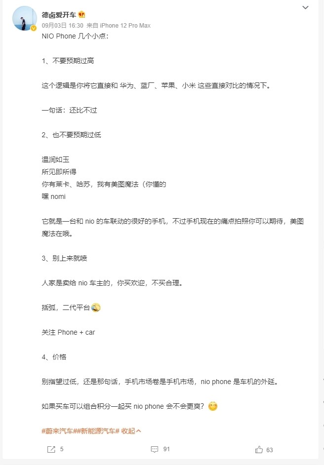 根據已經拿到 NIO Phone 的博主所言,這款手機雖然相比華為、vivo、蘋果、小米這些大廠還有不少差距,但依然值得期待。