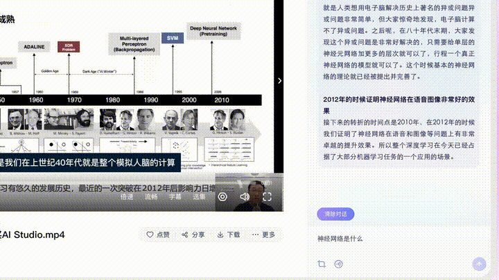 比如,打開一個課程視頻,「云一朵」可以在多模態能力的加持下,為視頻添加字幕、將全部字幕導出文稿、提煉內容重點、甚至添加文稿標題。