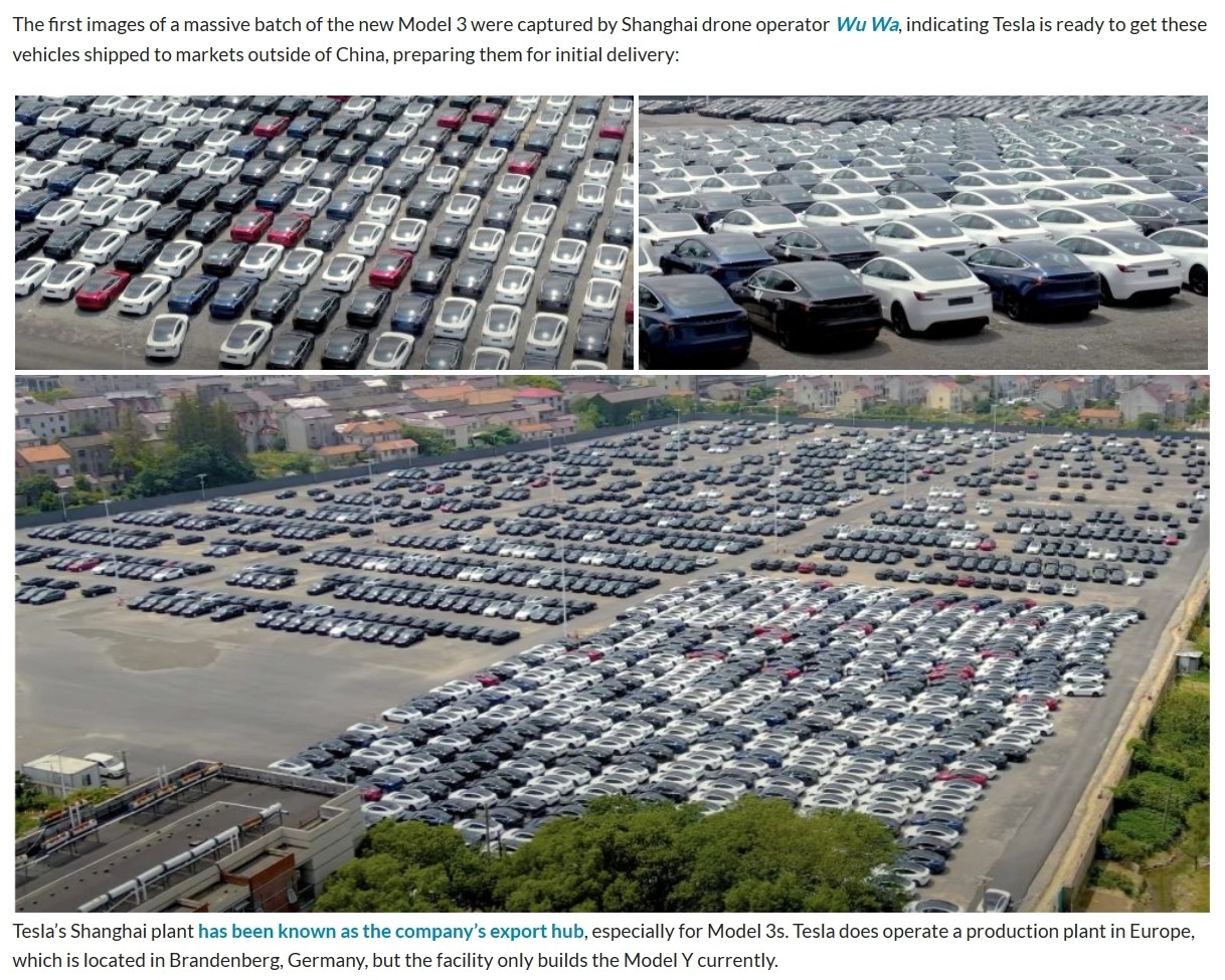 外媒根據名為 Wu Hua 的航拍者的照片,預估特斯拉已準備將上海超級工廠所生產的 Model 3 煥新版出口到歐洲市場,相關照片顯示出,特斯拉上海超級工廠外已停放有大量新生產的新款 Model 3 汽車。