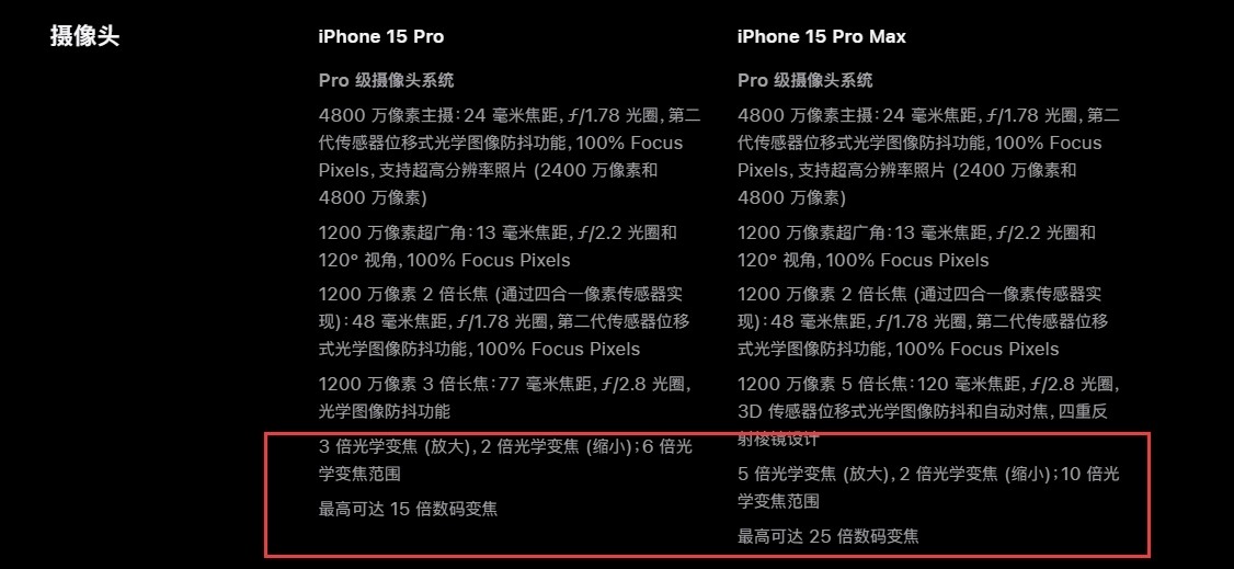 更何況,5 倍光學(xué)變焦還是 iPhone 15 Pro Max 獨(dú)有的功能,iPhone 15 Pro 及以下定位機(jī)型根本沒有。