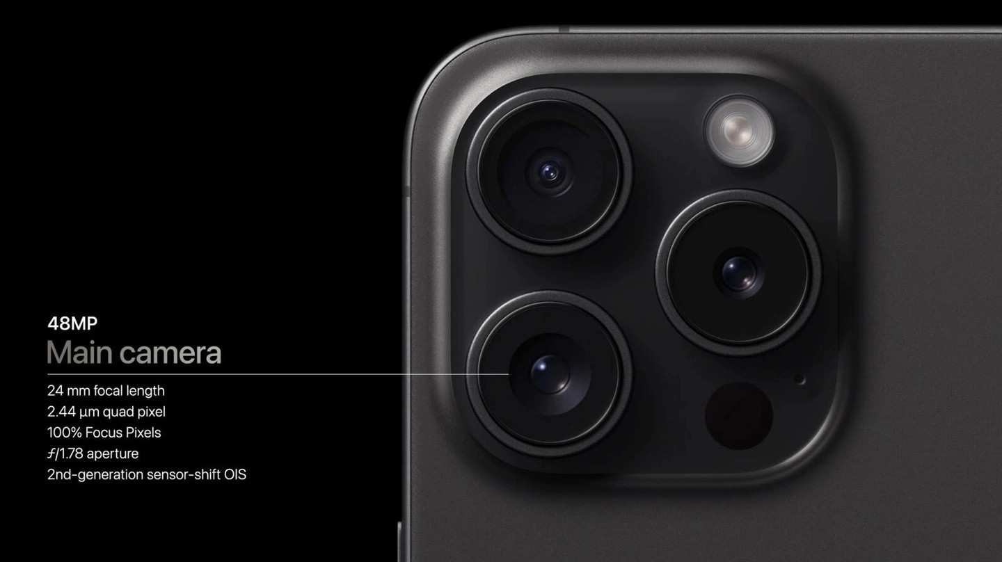蘋果今天發(fā)布的 iPhone 15 Pro 系列機(jī)型配備了升級(jí)的相機(jī)系統(tǒng),例如更大更先進(jìn)的 48MP 主攝,還有可減少鏡頭眩光的新涂層等等。