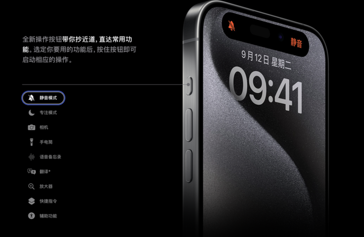 ▲ 固態(tài)多功能按鍵為 iPhone 15 Pro 版獨有