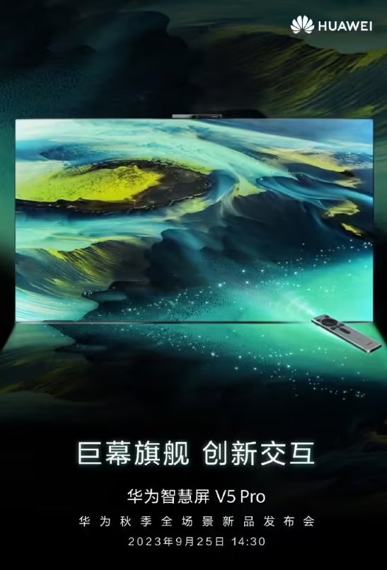 華為今日宣布,將于 9 月 25 日的秋季全場景新品發布會推出“華為智慧屏 V5 Pro”。