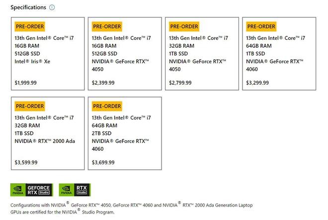 價格方面,Surface Laptop Studio 2 的起售價位 1999.99 美元,把配置全部拉滿則需要 3699.99 美元。