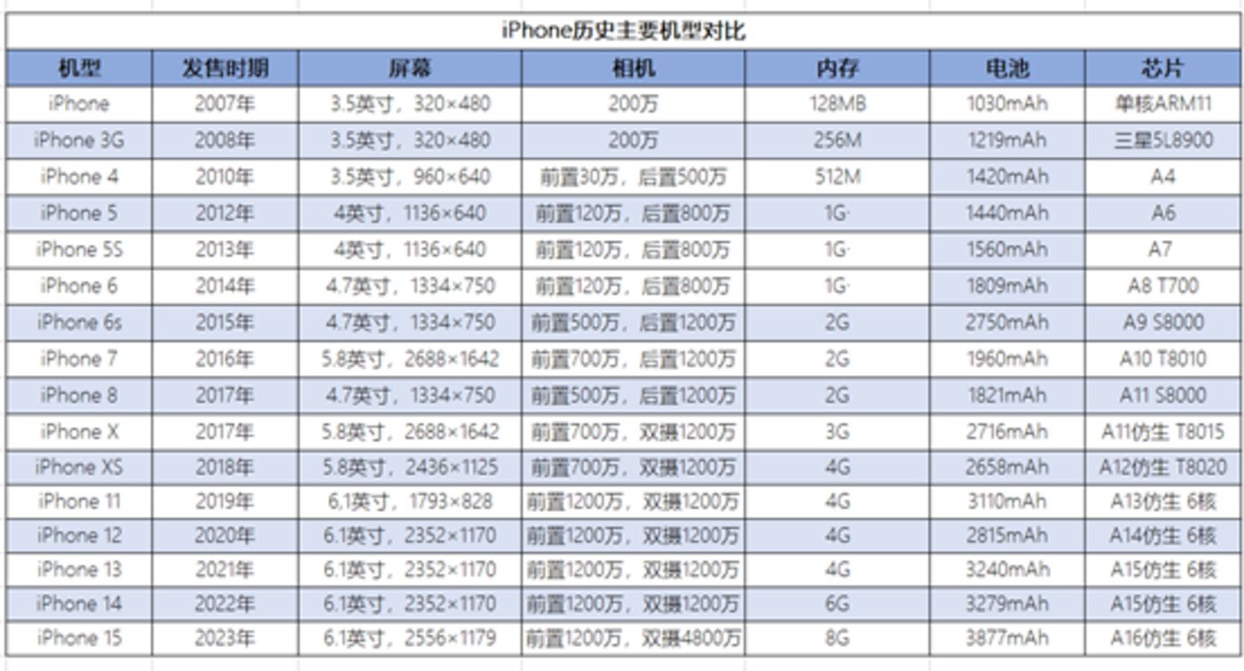 同樣地,2007 年 1 月 9 日,初代 Iphone 手機發(fā)布,從此手機行業(yè)正式開啟智能化階段,蘋果公司始終攥著行業(yè)中最核心的技術(shù),并扮演行業(yè)引領(lǐng)者的角色,其新品技術(shù)規(guī)格幾乎可以代表整個手機行業(yè)當(dāng)下的“頂配”。